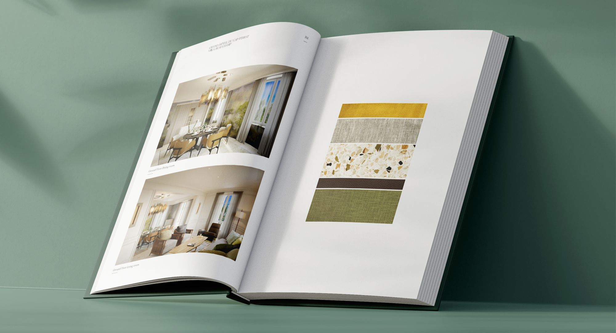 Création d’un livre de style qui nous plonge dans l’univers de l’hôtel à travers la présentation des villas : un style graphique élégant, comme un prolongement de l’univers de la marque.