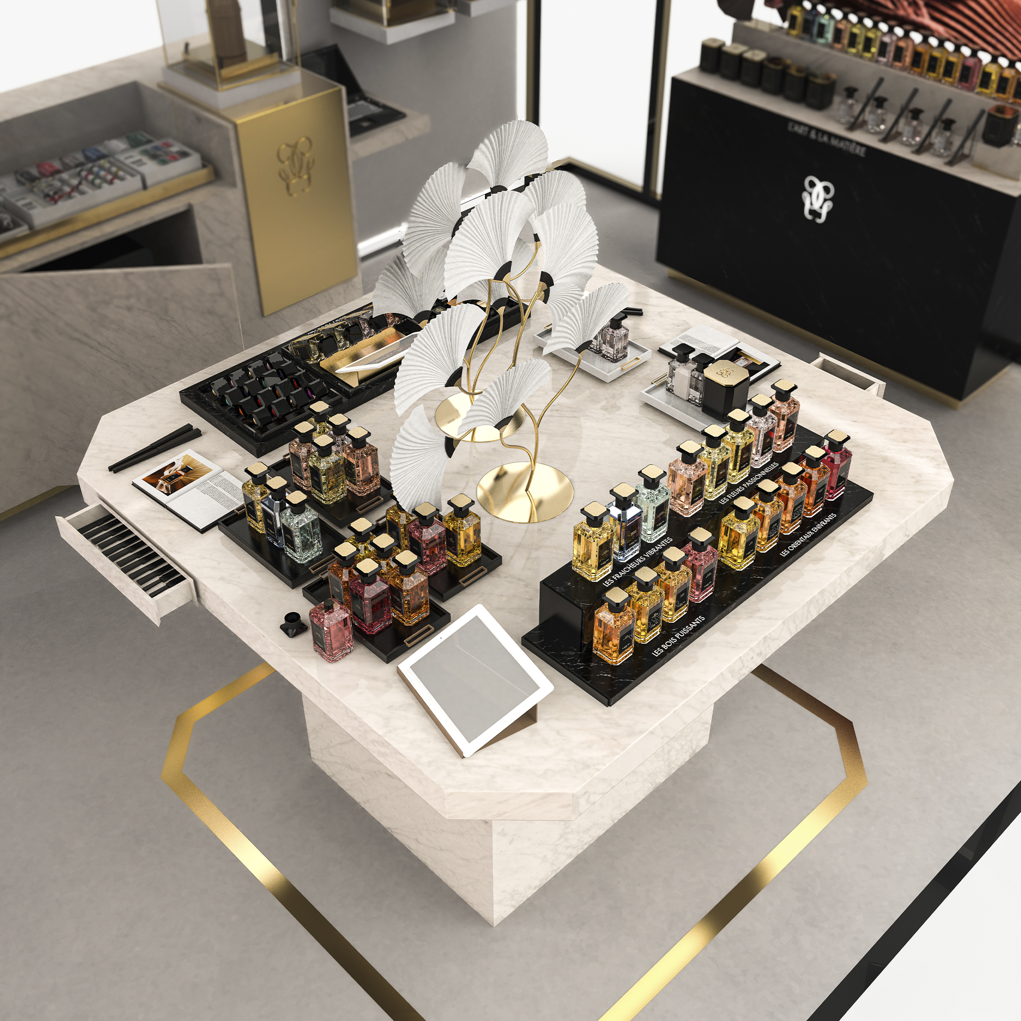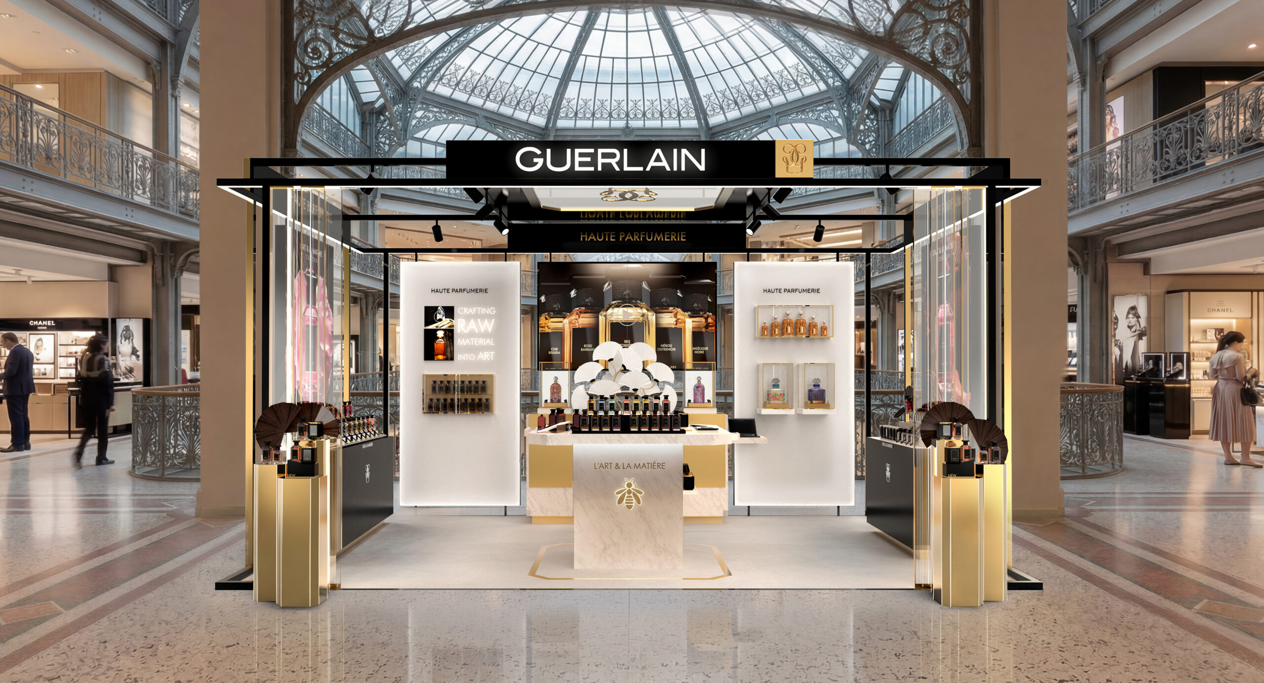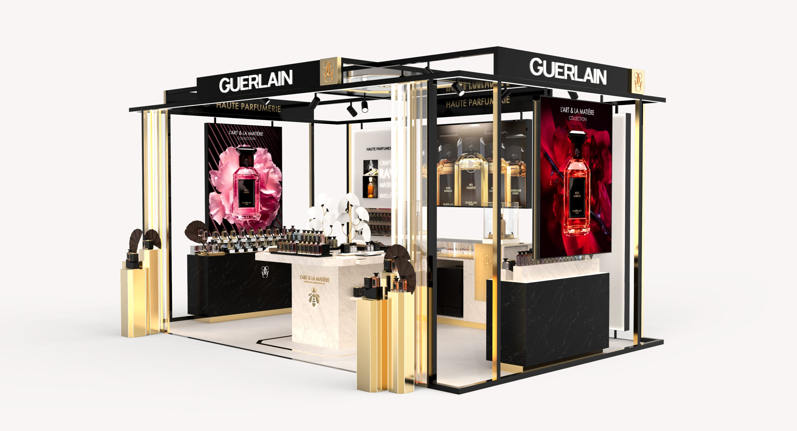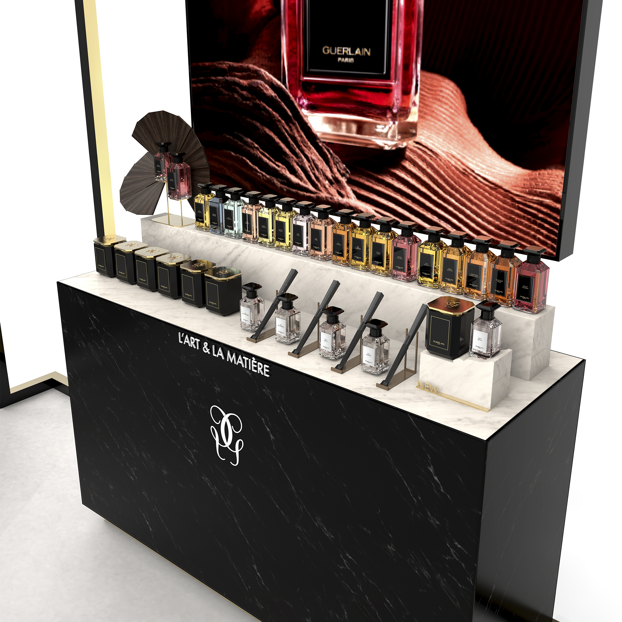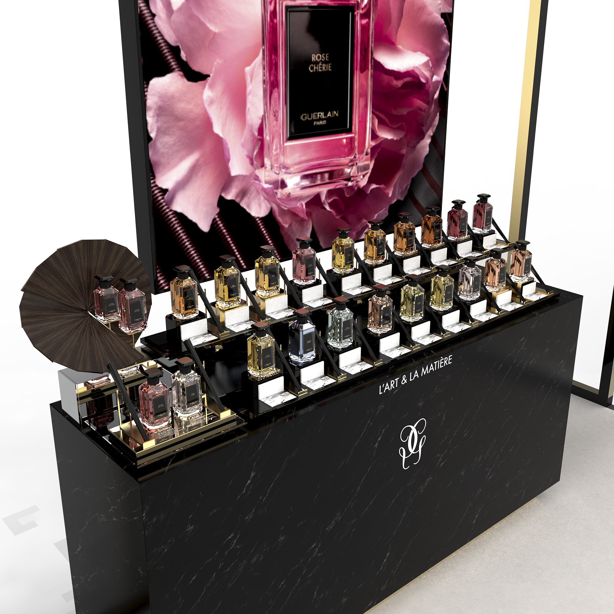 Créer des espaces de découverte VVIP pour le lancement de la collection de parfums de luxe L’Art & La Matière et de la collection de bougies L’Art de Vivre de Guerlain.