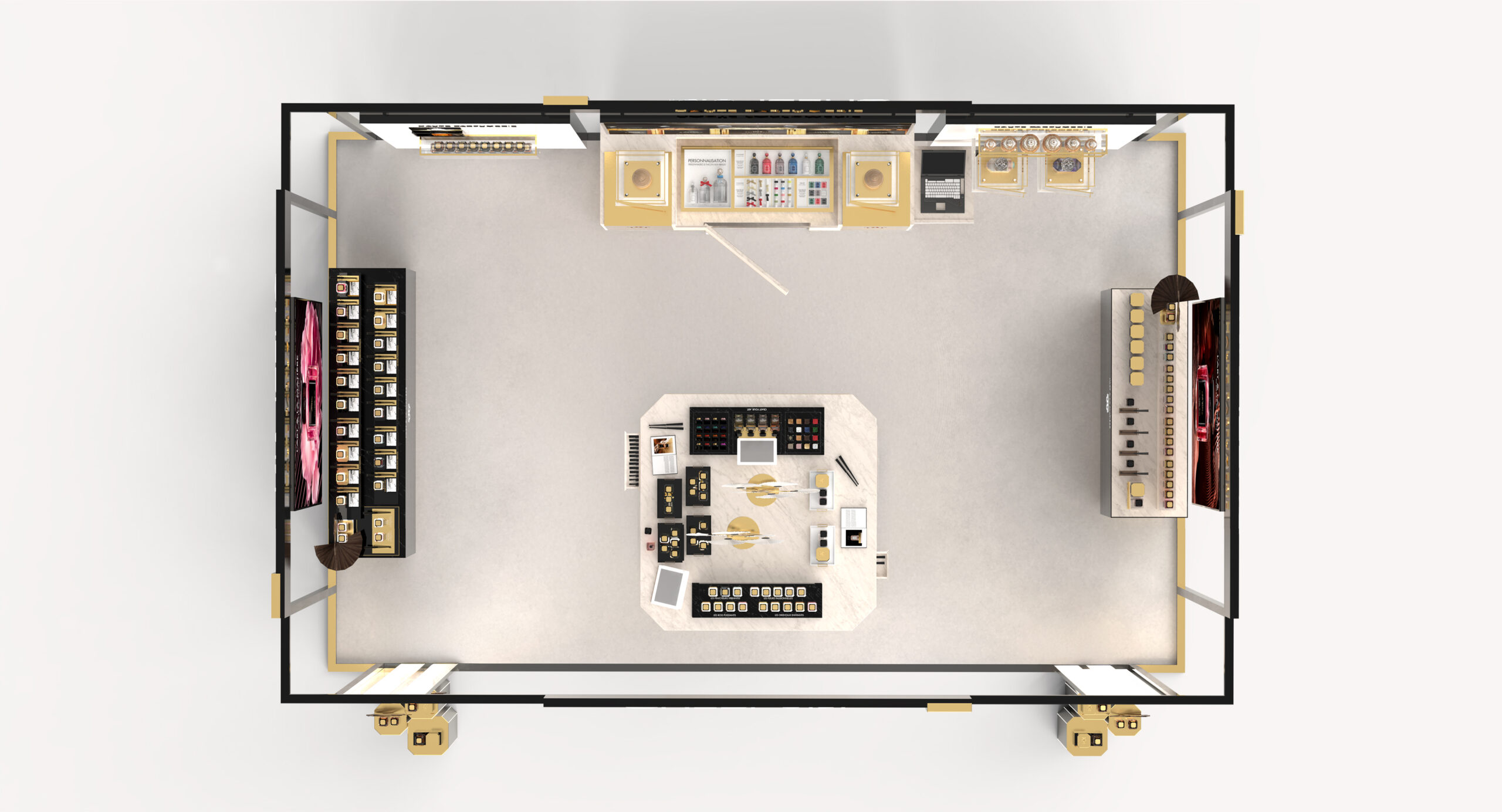 Un parcours de découverte au cœur du savoir-faire parfumeur et un rituel de personnalisation déclinés sur-mesure, pour des typologies d’espace variées : boutiques éphémères, showroom événementiels et espaces intimistes au sein des suites Harrods.