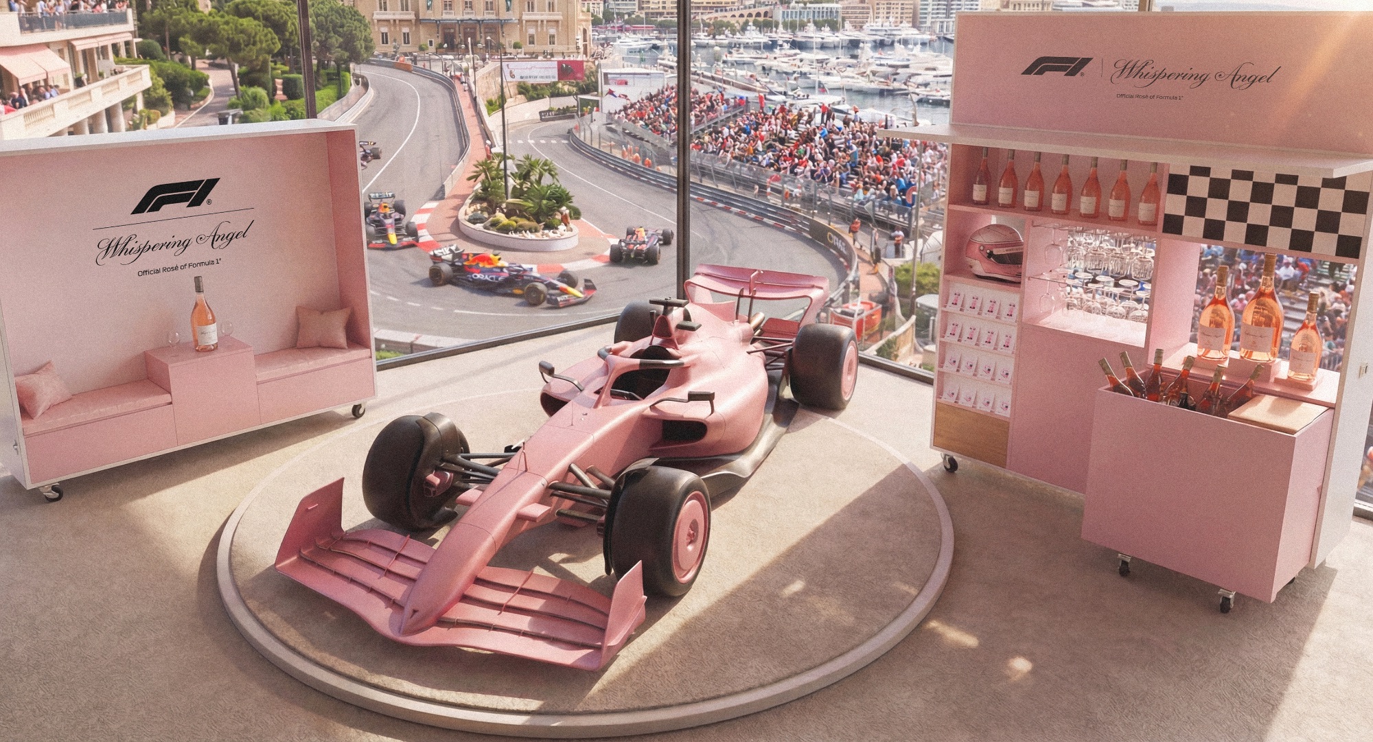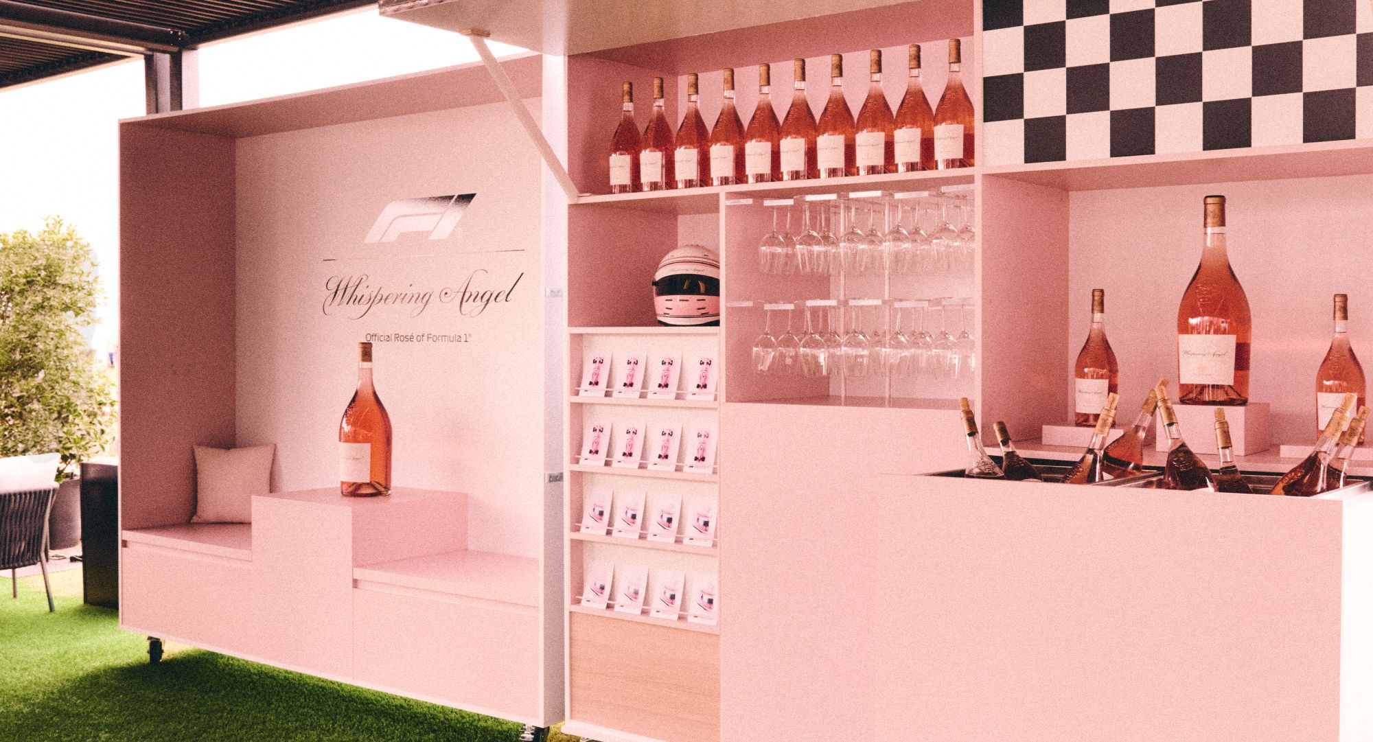 Dans le cadre de son partenariat avec la Formule 1, Whispering Angel souhaite renforcer sa présence dans les Paddock Clubs grâce à des éléments modulables, facilement adaptables aux différents espaces.